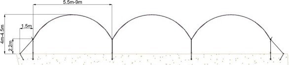 Agrotem commercial multi-tunnel greenhouses offer an affordable yet simple solution to the needs of vegetables and berries growers. Available in measurements 5.5m | 6.2m | 6.6m | 7.2m | 8m | 8.5m | 9m or any custom size between 5.5m-9m , multi-tunnels are ideally suited for growing soft fruit and vegetables.